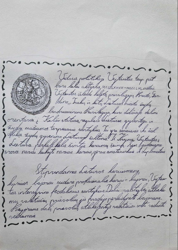 Kaip žinoma, matematika tai toks dėkingas dalykas, kurį galima priderinti prie visų gyvenimo situacijų. Štai, šių metų rugsėjo mėnesį 5c klasės mokiniai mokydamiesi natūraliųjų skaičių vingrybių, susipažino ir su romėniškais skaitmenimis, kurie iki šiol gan plačiai naudojami. Tokiu būdu gimė idėja susieti romėniškus skaitmenis su mūsų gimtojo miesto istorija ir tuo pačiu su Vytautu Didžiuoju.