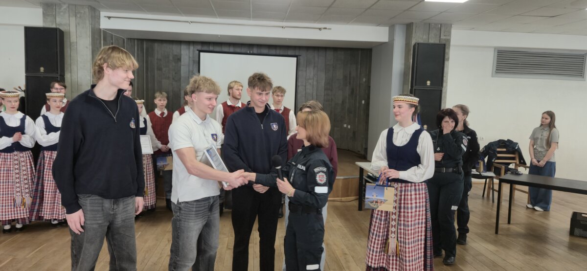 Šiandien vyko teisinių žinių konkursas „Aš ir policija“, kuriame savo žinias, budrumą ir komandinį darbą demonstravo net 12 komandų iš įvairių mokyklų. Dalyviai varžėsi atsakinėdami į klausimus apie teisę, saugumą, pilietiškumą bei policijos darbą.