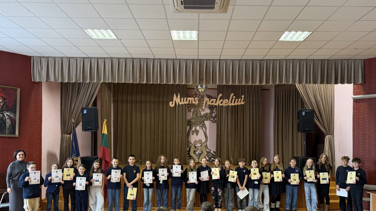 Labai ačiū vienuoliktos klasės mokiniui Augustui Garalevičiui už profesionalų renginio vedimą ir pagalbą penktų klasių mokiniams. Jo atsakingas ir šiltas bendravimas prisidėjo prie to, kad šventė vyktų sklandžiai, jaukiai ir įkvepiančiai.