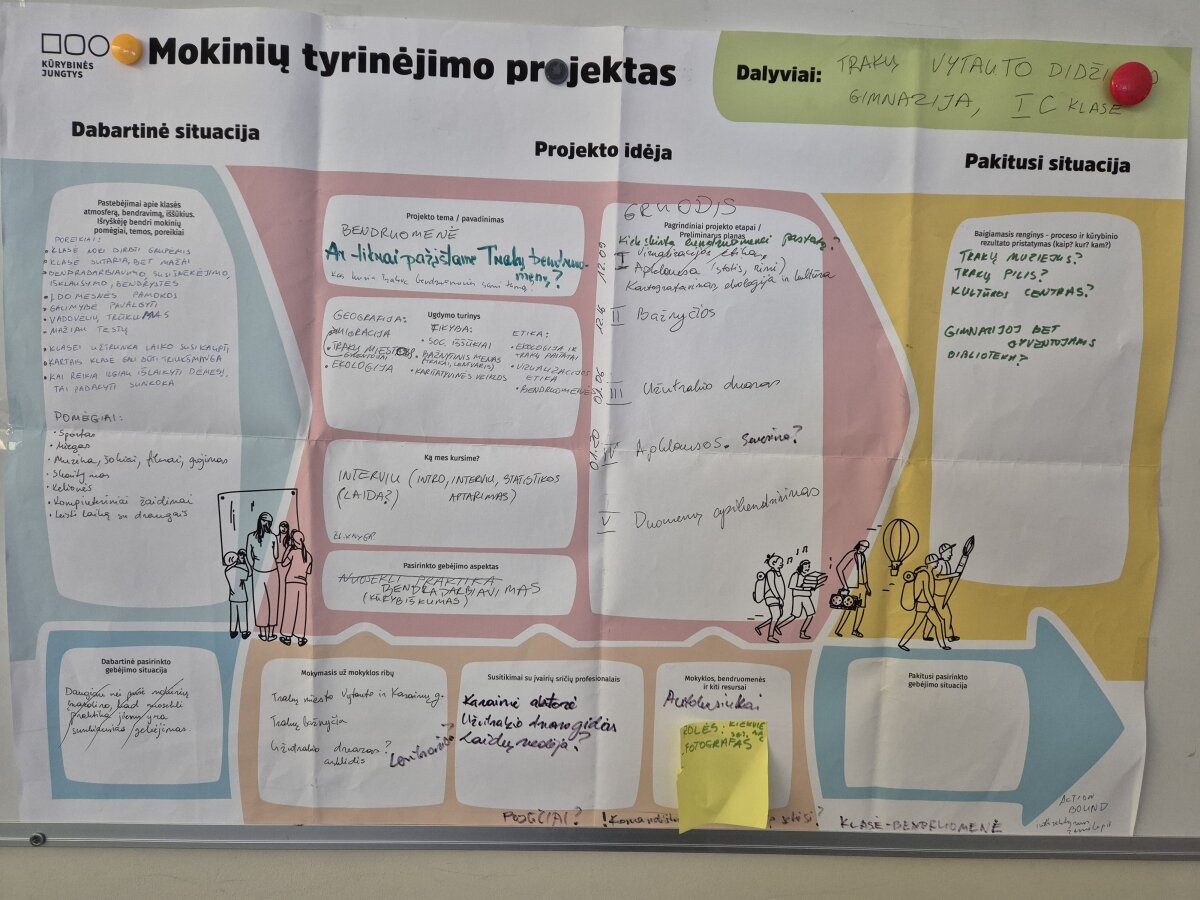 1c klasės mokiniai šiais mokslo metais dalyvavo projekte „Tyrinėjimo menas“, kurio tikslas – įtraukti į ugdymo procesą platesnę dalykinę integraciją, siejant ir panaudojant kultūrines patirtis bei objektus, bendraujant su įvairių sričių atstovais. Nuo spalio iki kovo mėnesio 1c klasės mokiniams vyko integruotos etikos, tikybos ir geografijos pamokos. Mokinių tyrinėjimo projekte bendradarbiauta su projekto paskirtu kuruojančiu praktiku, pamokos organizuotos ne mokyklos erdvėse, pasitelkiant miesto ar kitus kultūrinius objektus, susitinkant su įvairių sričių atstovais. Mokiniai, pasirinkę temas, nusprendė, kokį galutinį produktą kurs šio projekto metu, kokius savo grupės gebėjimus ugdys ir planavo, kaip tai padarys. Projekte 1c klasės mokiniai mokėsi ir bendradarbiavo su etikos mokytoja Sonata Urbanavičiūte, tikybos mokytoja Irma Karvelyte-Stankevič, geografijos mokytoja Vidmante Kalvaitiene ir projekto kuratore, aktore Egle Grigaliūnaite.