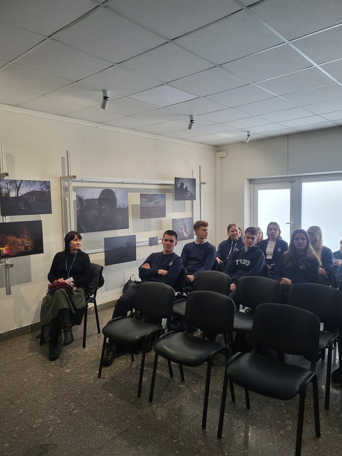 Po parodos pristatymo mokiniai dalyvavo tematinėje edukacijoje, kurios metu susipažino su karą Ukrainoje išgyvenančiųjų patirtimis, analizavo savo santykį su karu, aptarė ir mokėsi atpažinti Rusijos propagandos poveikį, tobulino bendrąsias kritinio mąstymo ir medijų raštingumo kompetencijas.