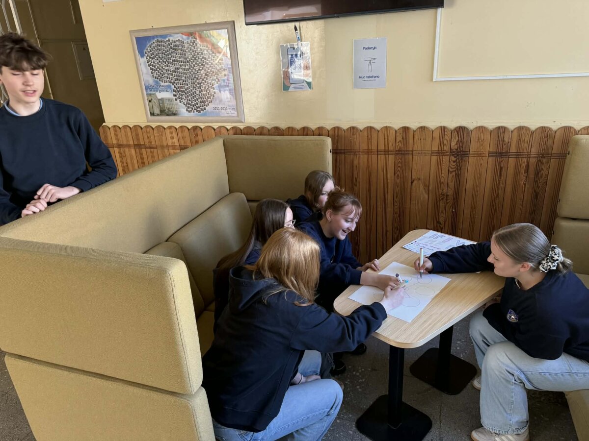 Siekdami veiklų įvairovės ir dar didesnio mokinių įsitraukimo, dalį klasių valandėlių perkėlėme į TŪM projekto dėka atnaujintas gimnazijos erdves. Modernios, bendradarbiavimą ir kūrybiškumą skatinančios aplinkos suteikia galimybę mokiniams dirbti skirtingais formatais – individualiai, porose bei įvairaus dydžio grupėse. Tokia darbo organizavimo įvairovė leidžia kiekvienam mokiniui atrasti sau tinkamiausią būdą įsitraukti į veiklą, prisiimti atsakomybę ir aktyviai dalyvauti sprendžiant bendrus klausimus.
