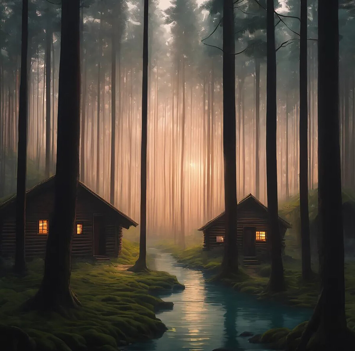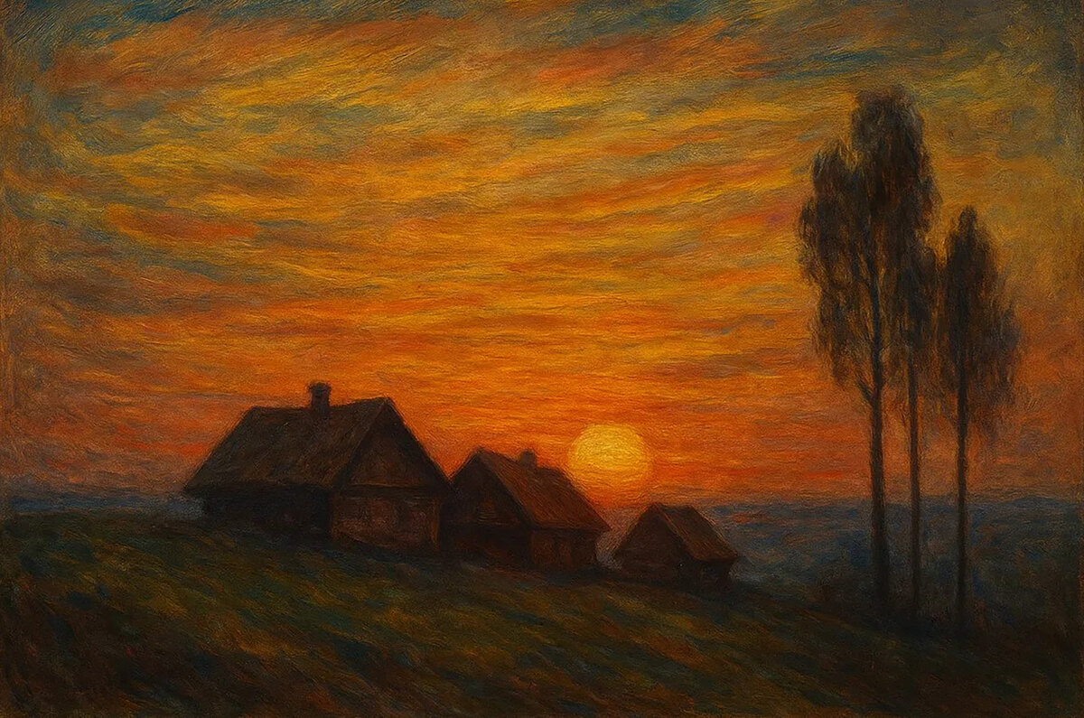 1c klasės gimnazistas Deividas Selimovičius gebėjo originaliai mąstyti apibūdindamas Čiurlionio paveikslą “Jūros sonata” ir savo sukurtą interpretaciją “The Tale of the Gnomes”, naudojant DI. “The waves and water in the painting Sonata of the Sea represent the flow of life, change, and the infinity of the sea. The boats symbolize journeys, hope, and fragility, as well as the human struggle against nature. You can also clearly see the initials M.K.Č. on the big wave. I created a painting using AI to resemble Čiurlionis’ style, which I titled The Tale of the Gnomes. It depicts small log cabins and conveys a sense of mystery and the unknown. The painting uses deep blues, dark greens, golds, and reds — colours commonly seen in Čiurlionis’ works.”