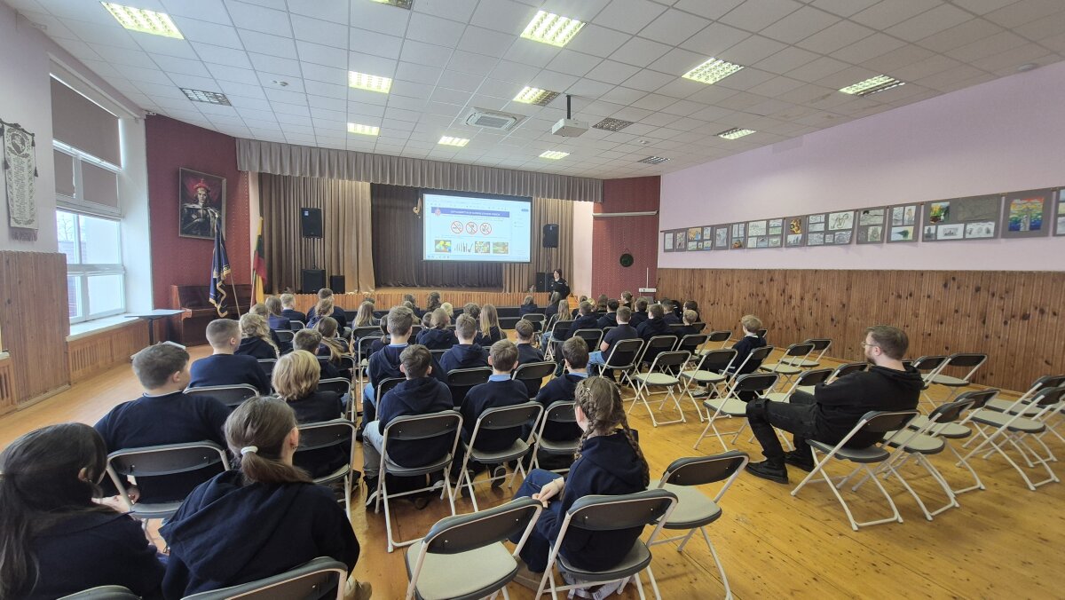 Mokyklos psichologas kalbėjo apie emocinę savijautą, bendraamžių spaudimą ir drąsą kreiptis pagalbos. Socialinė pedagogė aptarė mokinių teises ir pareigas, pabrėžė pagarbaus elgesio, saugios aplinkos kūrimo bei bendruomeniškumo svarbą.