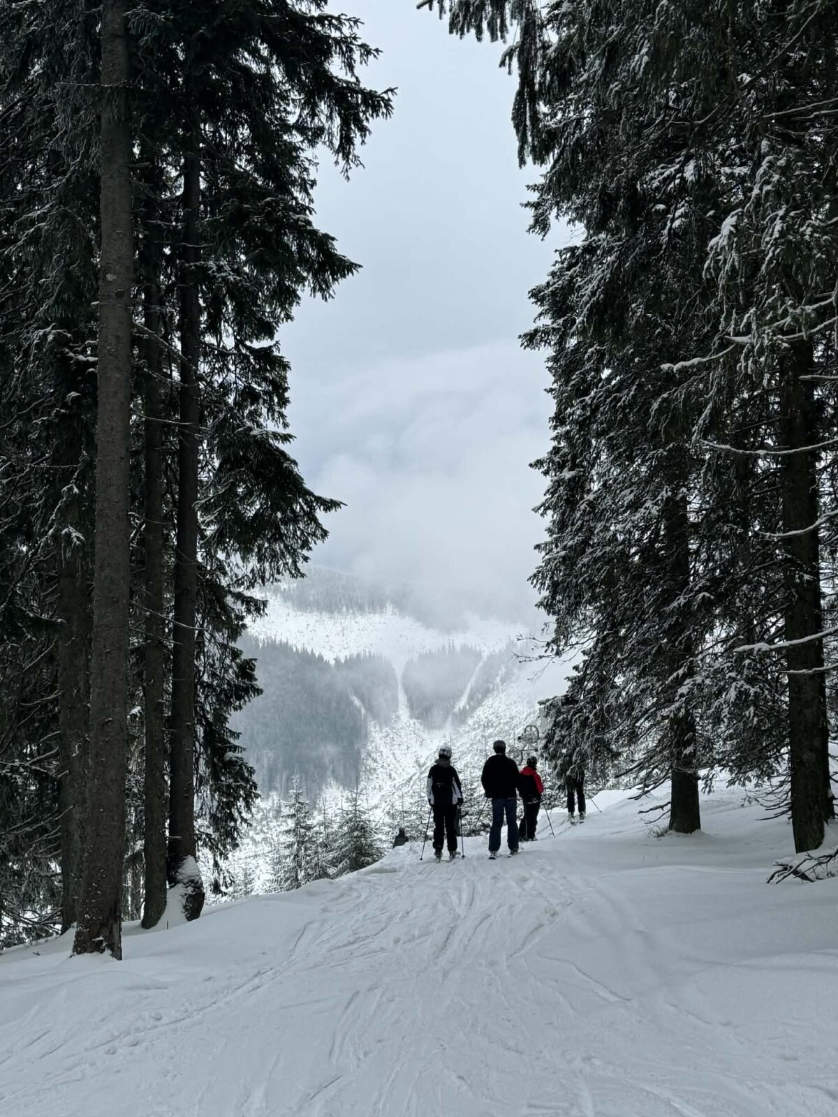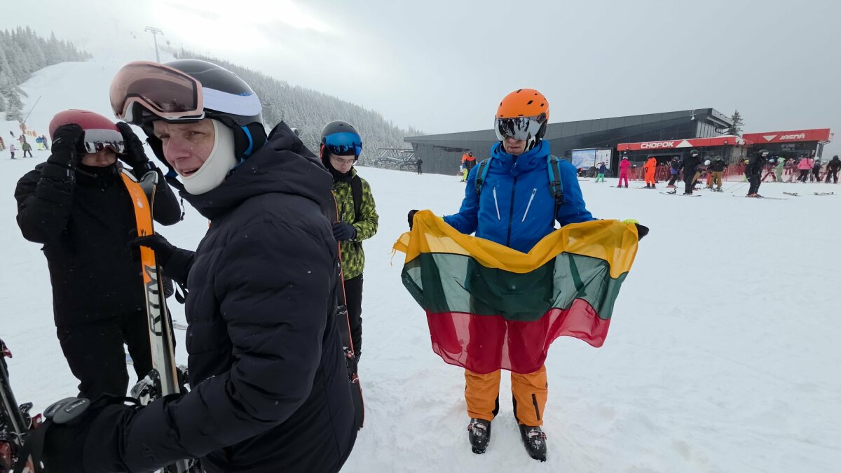 Vasario 16-ąją, Lietuvos valstybės atkūrimo dieną, pakilome į Chopok kalną. Ten, apsupti snieguotų viršūnių ir skaidraus žiemos dangaus, išskleidėme Lietuvos trispalvę. Tai buvo jaudinanti akimirka – stovėti Slovakijos kalnuose, jausti šaltą vėją ir kartu suvokti, kad širdyse nešiojamės savo šalį.
