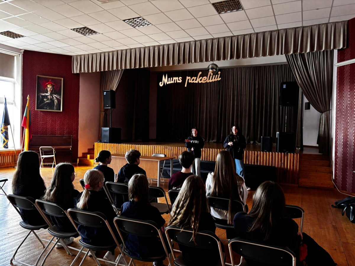 „Labai patiko, kad veiklos vyko ne įprastoje klasėje, o aktų salėje. Ten daugiau vietos judėti, galima kitaip išdėstyti baldus, kurti grupėse, išbandyti pasirodymus scenoje. Naujas apšvietimas ir garso įranga leido pasijusti tarsi tikrame teatre ar koncertų salėje. Tokia aplinka skatina galvoti kūrybiškiau, drąsiau reikšti mintis ir labiau įsitraukti į veiklas.“ (Darija Labanova))