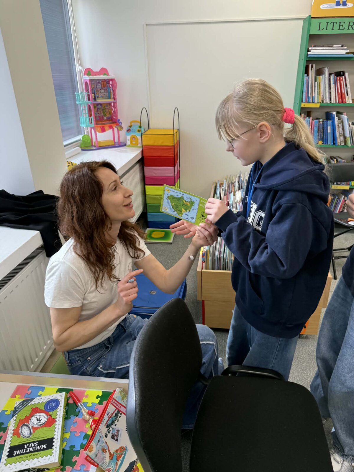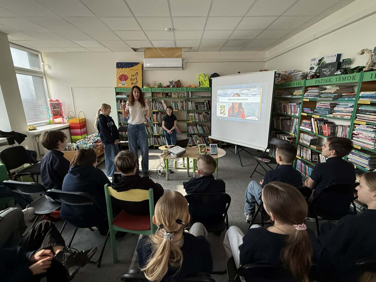 Kovo 18 d. žygiavome į Trakų viešosios bibliotekos Vaikų literatūros skyrių, kurioje turėjo vykti knygos ,,Magnetinė sala“ pristatymas. Bibliotekoje susitikome su linksma ir draugiška šios knygos rašytoja Viktorija Butautis, kuri yra lietuvė, tačiau kartu su šeima dabar gyvena maždaug 16 tūkstančių kilometrų nutolusioje nuo Lietuvos Australijoje.