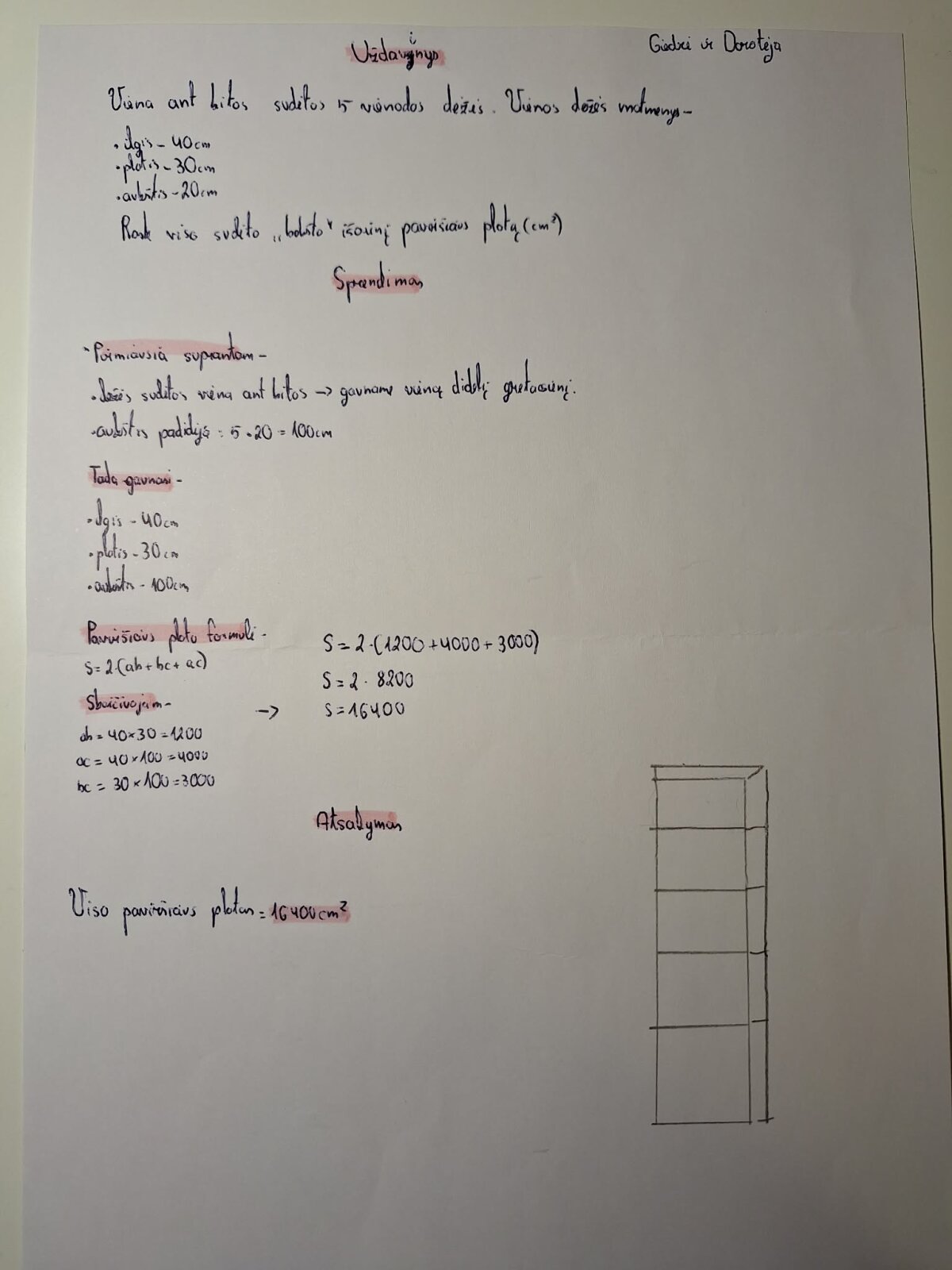 Stačiakampio gretasienio ploto ir tūrio skaičiavimas. Išgirdę šiuos žodžius visi pagalvojome: „Na, štai dar viena sunki tema.“ Tačiau pasimokę pagal naują mokytojos Danutos Debesienės mokymo metodą į šią temą dabar galime žvelgti su daug mažiau nežinomybės.